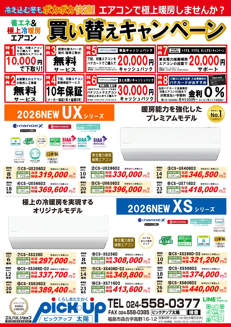 2025年11月暖房エアコンチラシ表